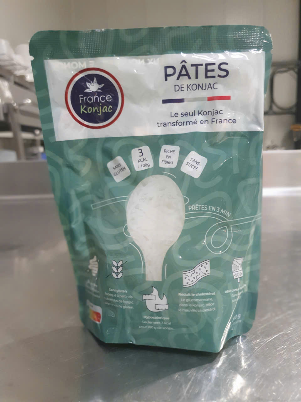 • Nous produisons nos pâtes  et notre riz de konjac en Anjou. Nous utilisons seulement 3 ingrédients : de la farine de konjac japonaise, de l’eau et de l’eau de chaux. Nous n’ajoutons ni sulfites, ni aucun autre conservateur afin de vous garantir des produits naturels et sains.
